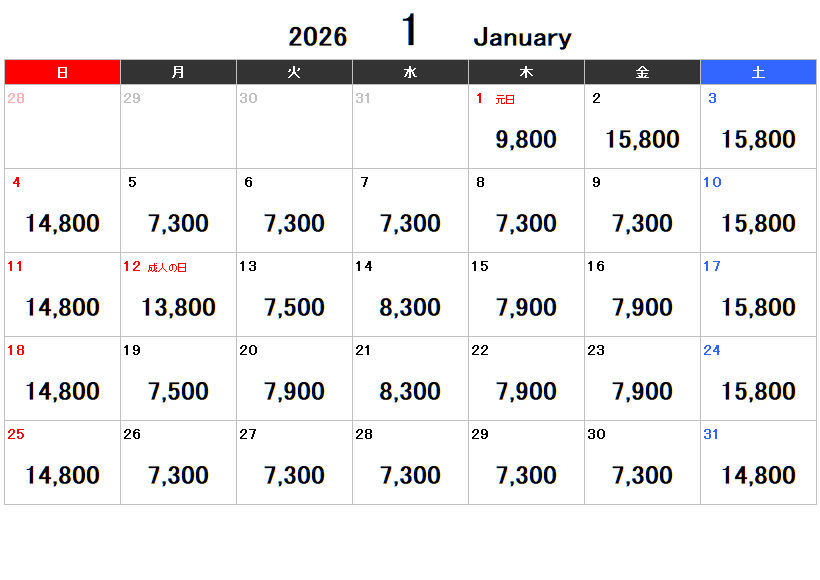 | 基本料金 | 昼食付の料金です。(一部差額が発生するものがございます。) |