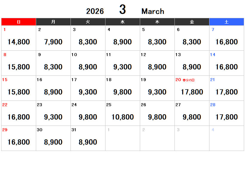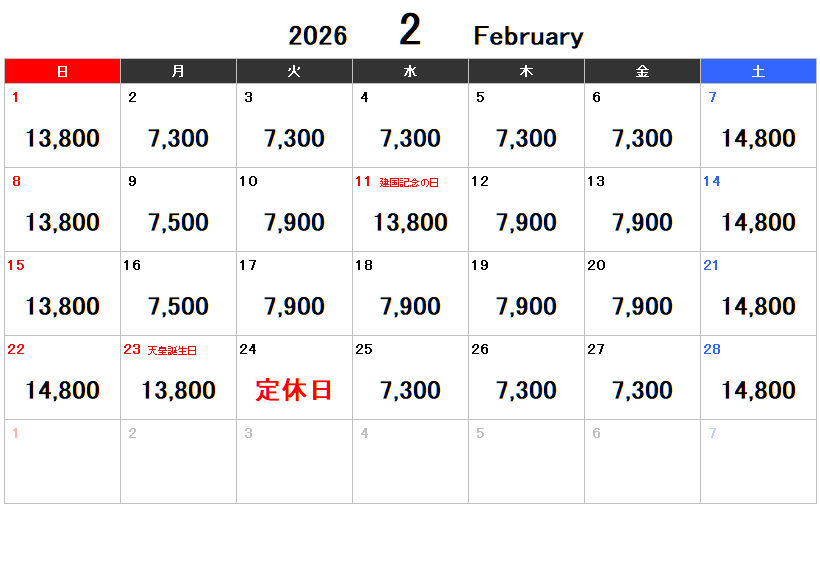 | 基本料金 | 昼食付の料金です。(一部差額が発生するものがございます。) |