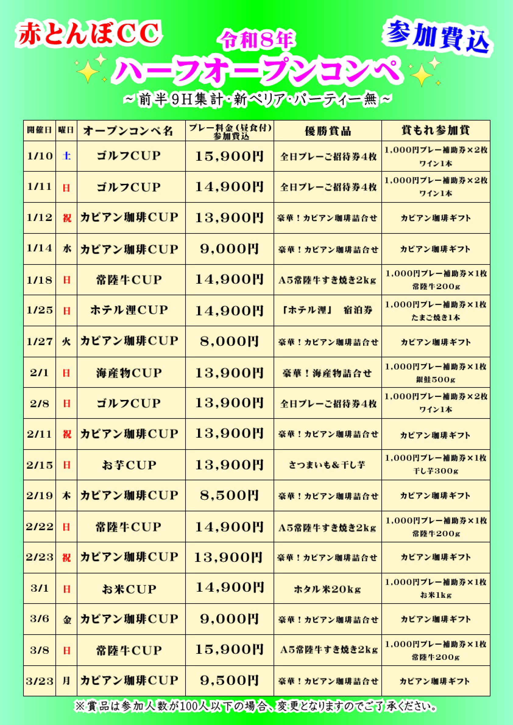 【2025.12.12】赤とんぼCC 令和8年ハーフオープンコンペご案内