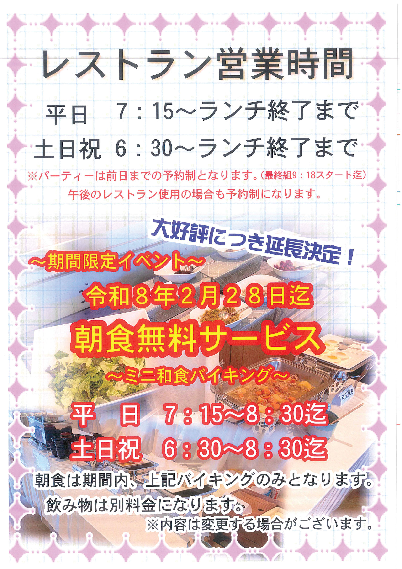 【2025.12.15】朝食無料サービス、大好評につき延長決定!